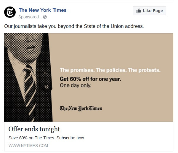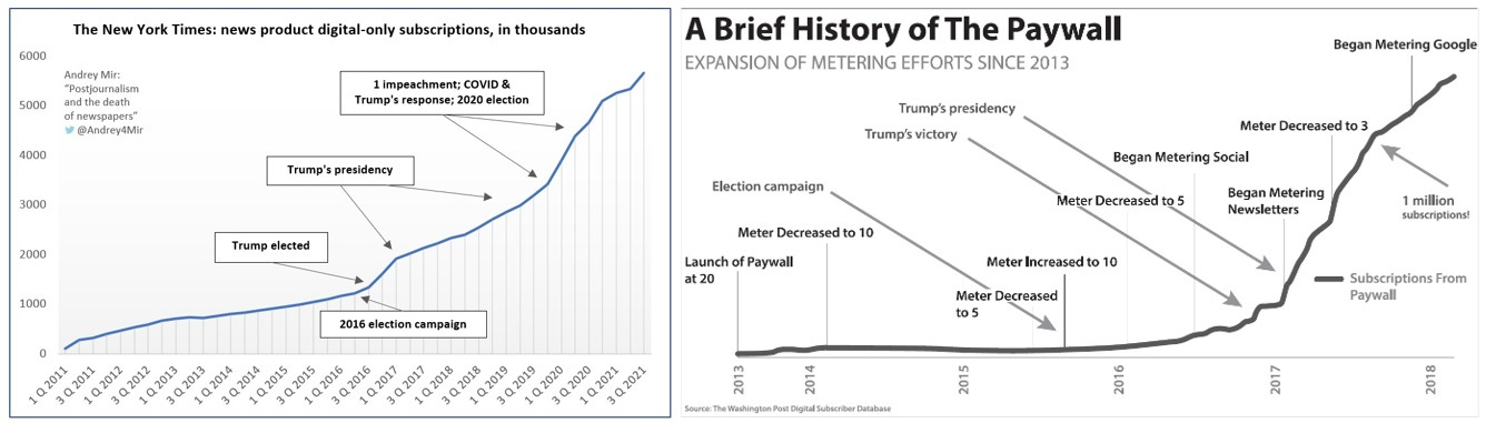 The Trump bump: political cause became the main driver of subscription pitches in major media.