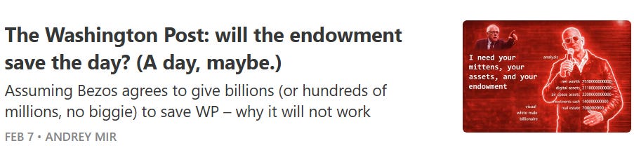 And that was the year when Jeff Bezos bought The Washington Post and expected to be its savior. The paper was already in crisis, and yet the power of the brand and market inertia still made its subscription weekend bundles densely packed with supplements.