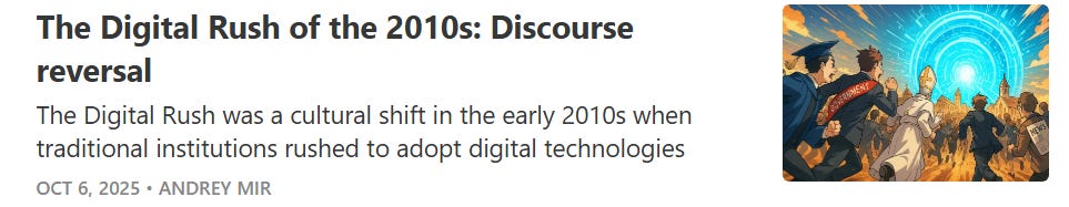 Reversal happens when a form peaks. That’s why the digital reversal started with educated elites: young professionals in media, tech, academia, and the broader knowledge economy—the apogee of print culture. (Young, because they pioneered digital media and became the vanguard.)