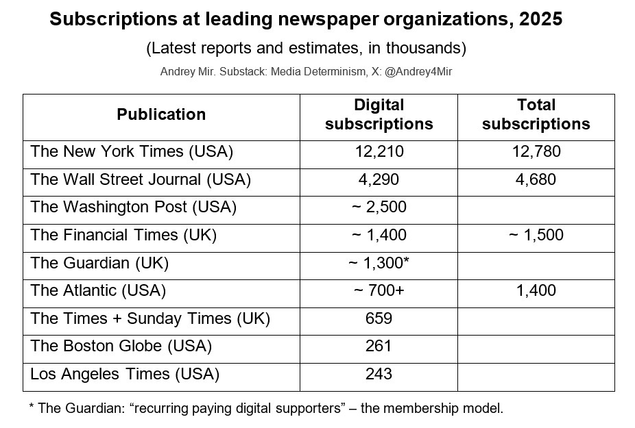 1. Digital “news-only” subscriptions remain a product for hardcore users who are willing to pay premium prices and have no interest in lifestyle content. This segment is substantial but shrinking.