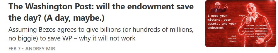 So it’s not “the winner takes it all”—not at all. It’s a new business model. And yet, how many media organizations can realistically build a subscriber base of 10+ million and transition from a news business to a platform business that subsidizes news? Except for the Times, likely none.