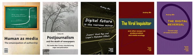 – Geoff Shullenberger, managing editor of Compact, about Digital Future in the Rearview MirrorPostjournalism and the Death of Newspapers may be the most profound analysis of the subject since the last time Marshall McLuhan wrote about it. Mir describes a universe in which the news now chases the reader rather than the other way around. Everything is told in a wonderful epigrammatic style—you will be digging up quotes from it for years.